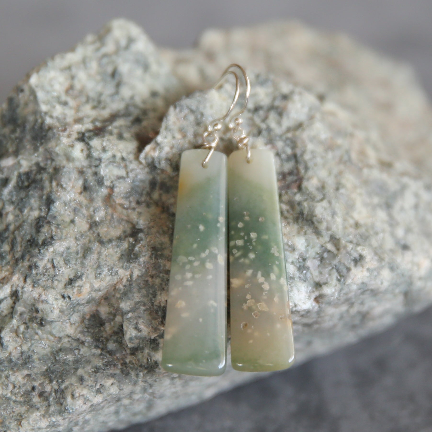 Green Watercolor Agate and Sterling Earrings