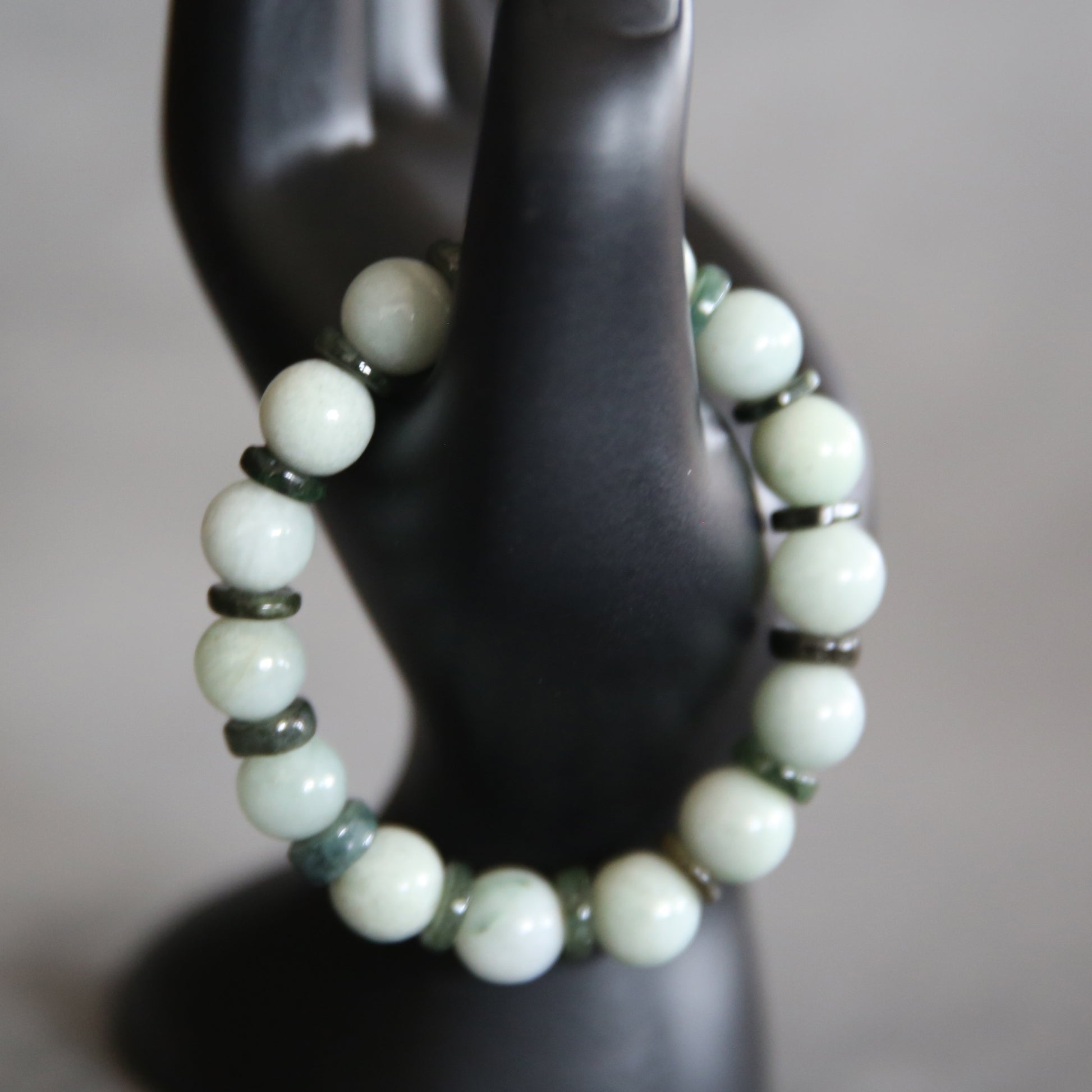 Jade is a stone of prosperity, harmony, and emotional balance, known for attracting luck and wisdom. It helps release negative energies, enhance self-awareness, and promote inner peace. As a grounding stone, it nurtures relationships and boosts self-confidence. Used in meditation or jewelry, Green Jade symbolizes protection and abundance. These beads are approx. 8mm in diameter. Handmade by Monene.