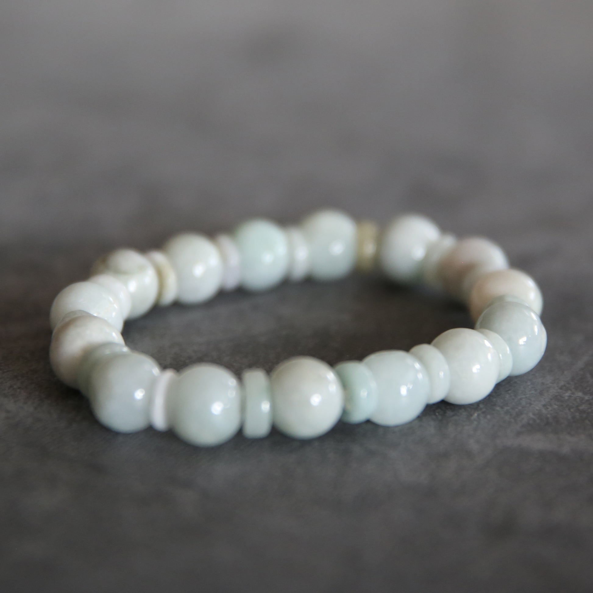 Jade is a stone of prosperity, harmony, and emotional balance, known for attracting luck and wisdom. It helps release negative energies, enhance self-awareness, and promote inner peace. As a grounding stone, it nurtures relationships and boosts self-confidence. Used in meditation or jewelry, Green Jade symbolizes protection and abundance. These beads are approx. 8mm in diameter. Handmade by Monene.