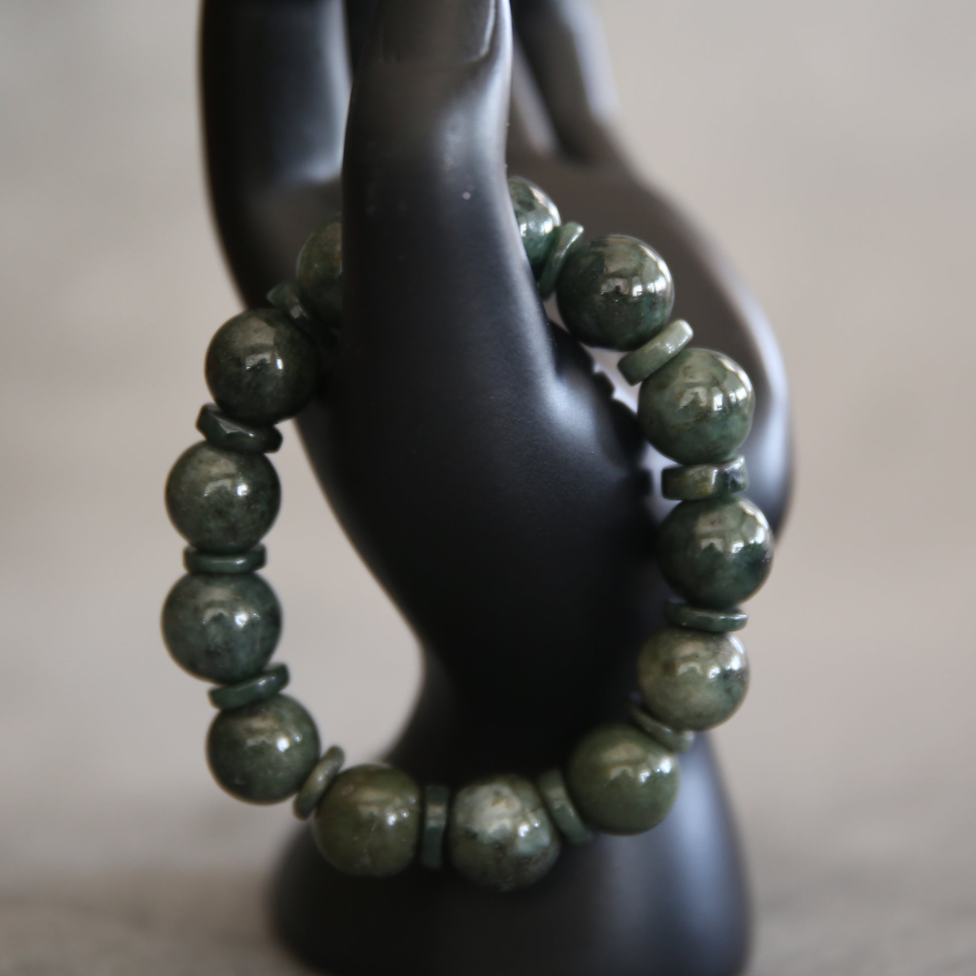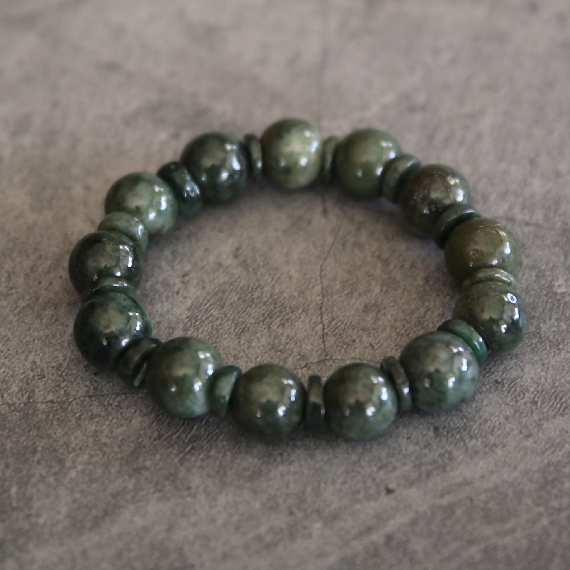 Jade is a stone of prosperity, harmony, and emotional balance, known for attracting luck and wisdom. It helps release negative energies, enhance self-awareness, and promote inner peace. As a grounding stone, it nurtures relationships and boosts self-confidence. Used in meditation or jewelry, Green Jade symbolizes protection and abundance. These beads are a chunky 10mm in diameter. Handmade by Monene.