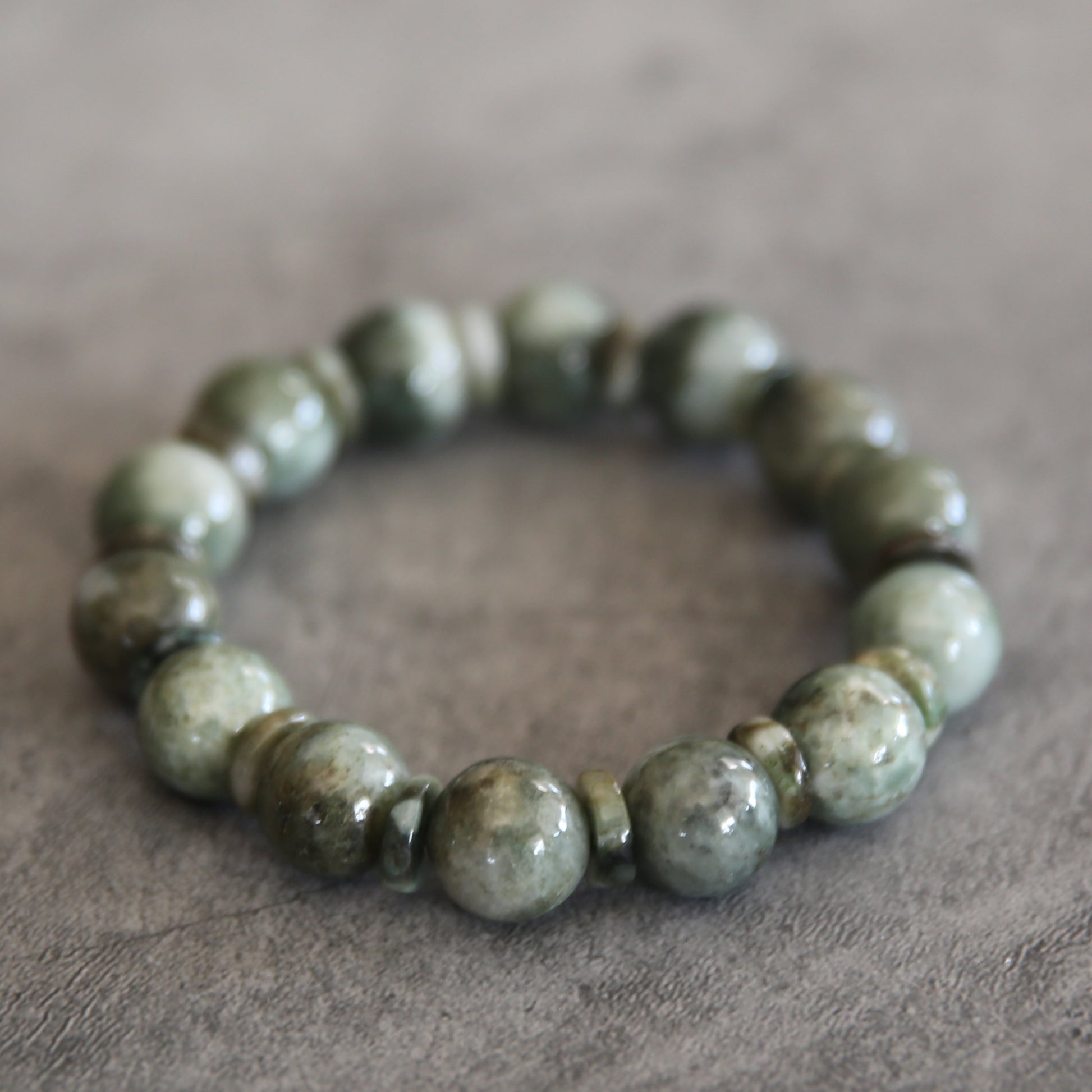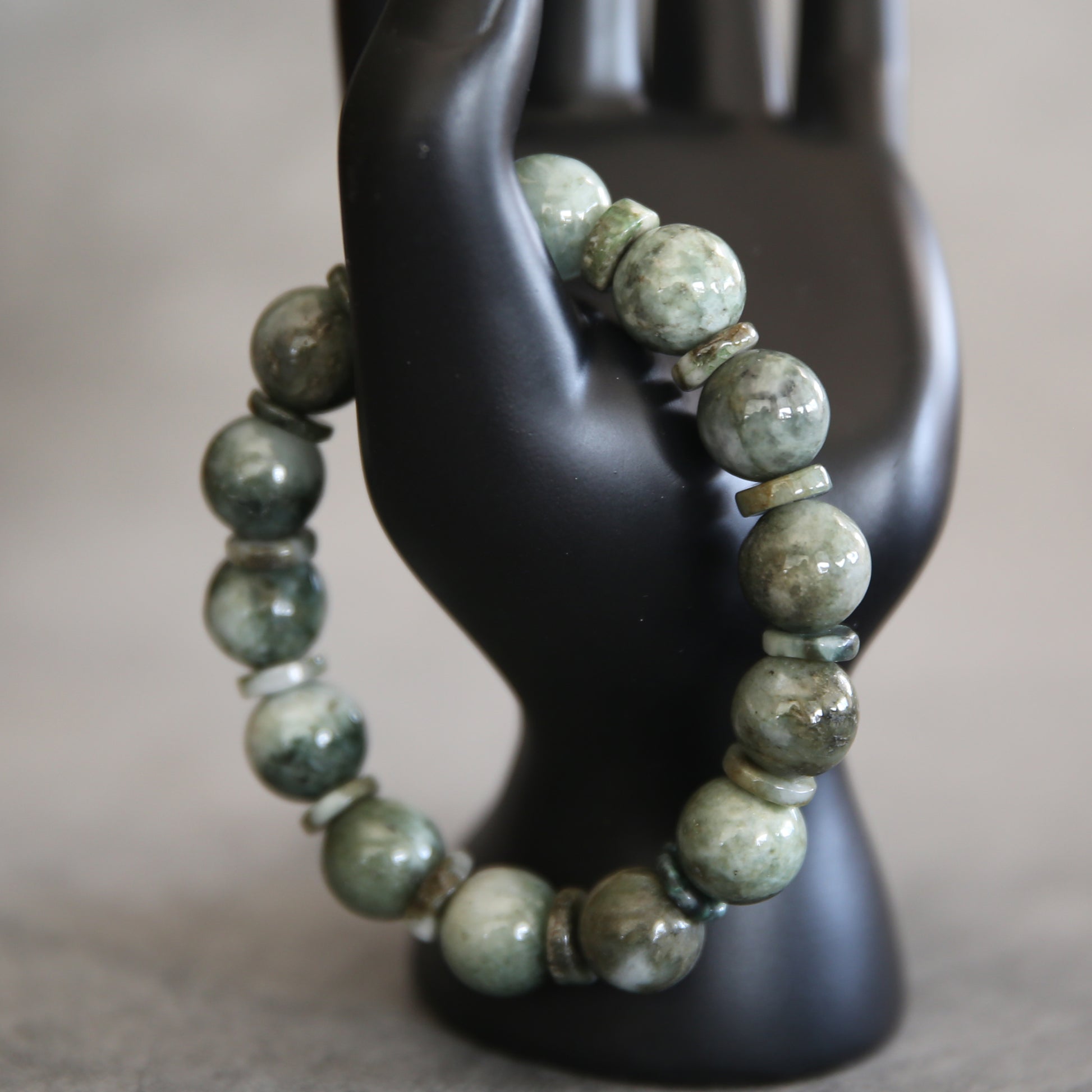 Jade is a stone of prosperity, harmony, and emotional balance, known for attracting luck and wisdom. It helps release negative energies, enhance self-awareness, and promote inner peace. As a grounding stone, it nurtures relationships and boosts self-confidence. Used in meditation or jewelry, Green Jade symbolizes protection and abundance. These beads are a chunky 10mm in diameter. Handmade by Monene.